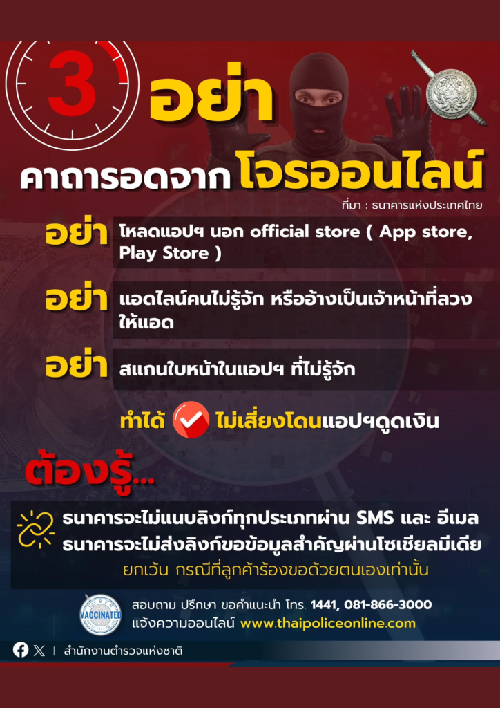 แจ้งเตือนการหลอกลวงออนไลน์ 16 เมษายน 2568 โดย murangpantech / ข่าวประชาสัมพันธ์,ข่าวฝากประชาสัมพันธ์ Facebook iconFacebookTwitter iconTwitterLINE iconLine